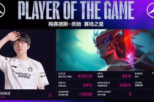 Rookie次局永恩以4/4/10的数据拿下MVP,他在比赛后期成为翻盘核心,高地1v4“向天再借30秒”拖至队友复活防止被一波,团战也有多次高光操作。