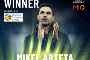 体育资讯3月6日讯 伦敦足球奖官方宣布,阿森纳主帅阿尔特塔当选年度最佳教练,赖斯当选年度最佳球员。