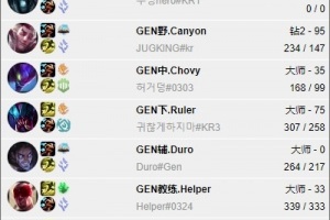 体育资讯7月31日讯 根据韩服排位统计小程序显示,GEN选手们再次一同登上韩服打斗魂竞技场。